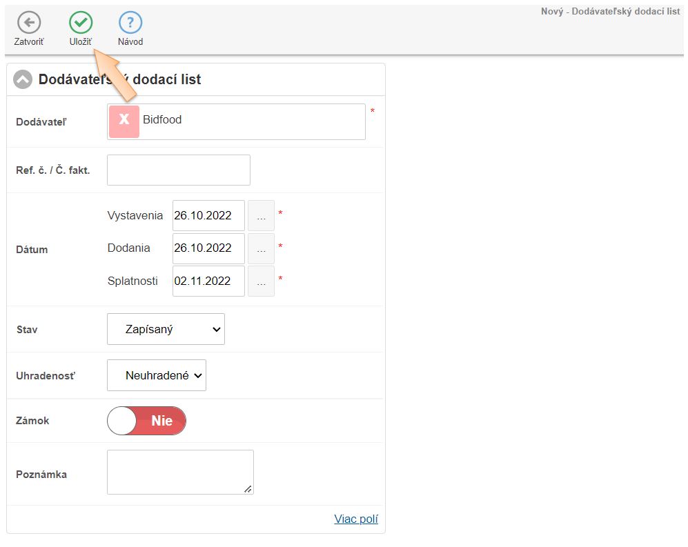 6. Postupujte rovnako aj pre ostatné dodacie listy.