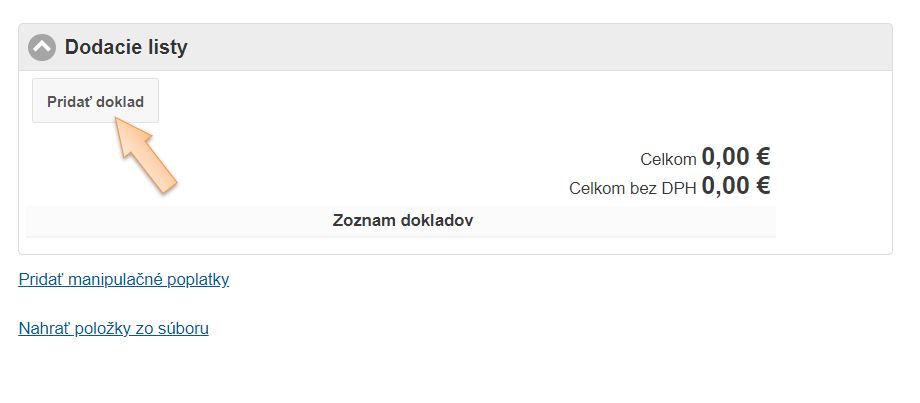 • Kliknite na Pridať manipulačné poplatky, ak sú na doklade naúčtované ďalšie poplatky súvisiace s dodávkou tovaru.