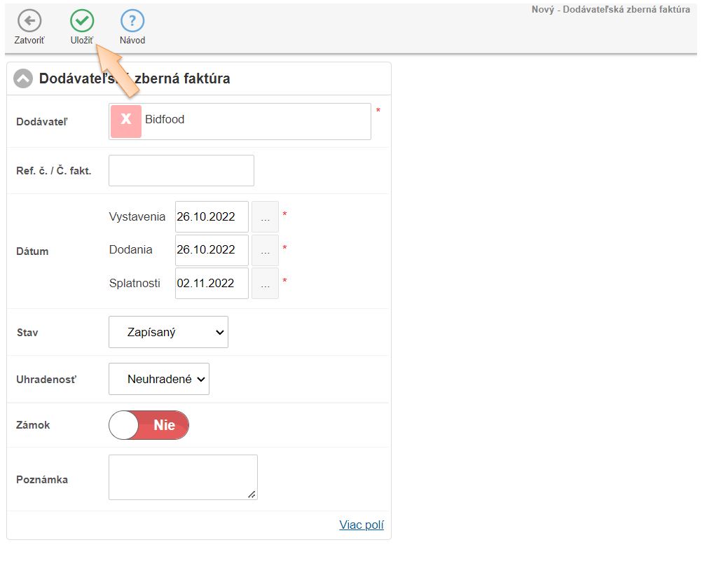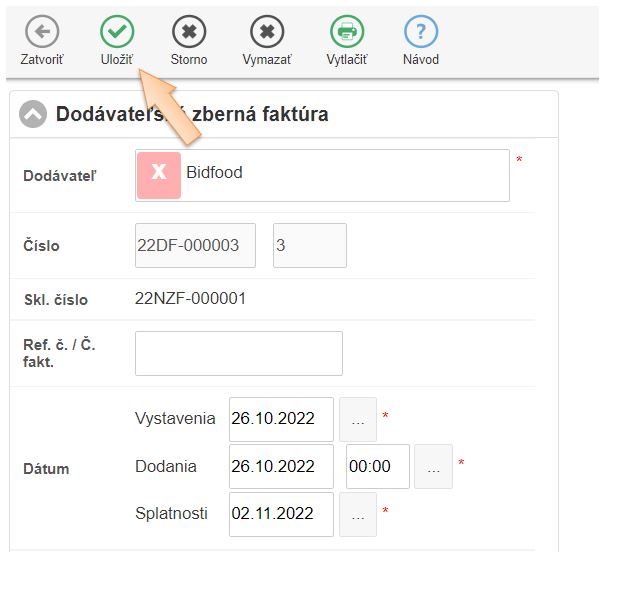 Po kompletnom zaevidovaní dodacích listov od dodávateľa a doručení vyúčtovacej faktúry vytvorte zbernú faktúru v aplikácii pre kontrolu dodaného tovaru.