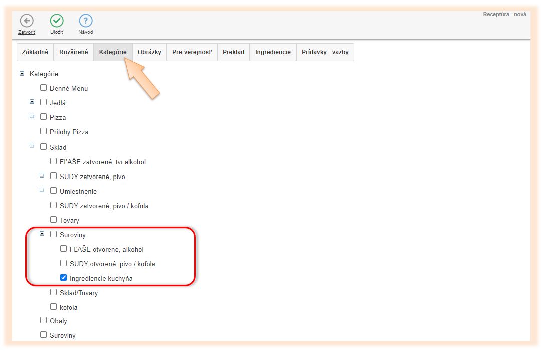 - V záložke Kategórie vyberte kategóriu Sklad.